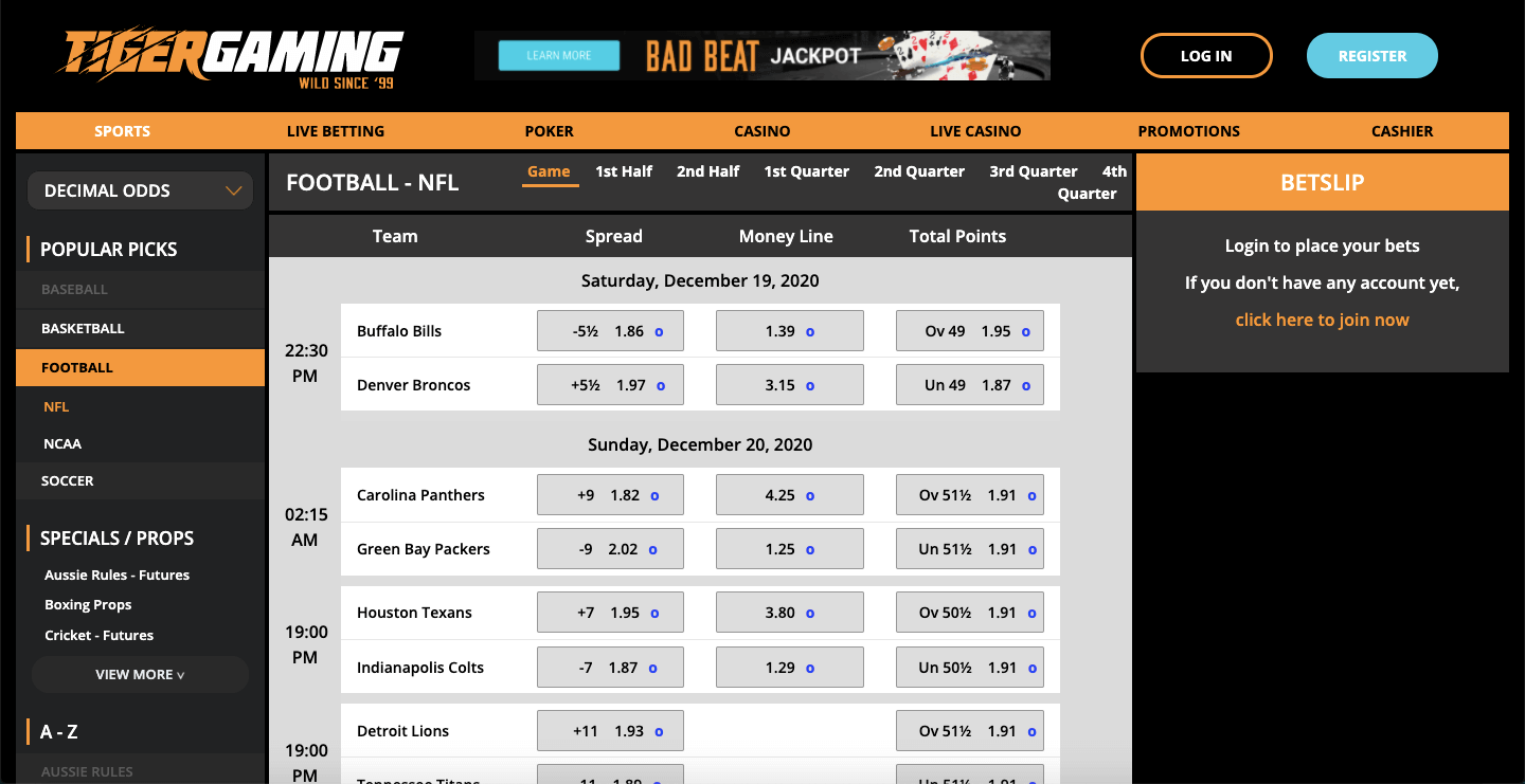Will I get a welcome bonus?Currently, TigerGaming does not have sports betting bonuses. However, there are welcome bonuses for casino and poker enthusiasts.